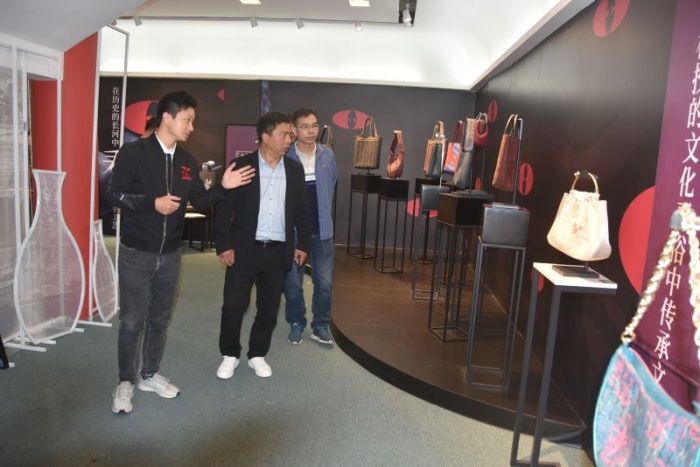 嘉賓們先后參觀了服裝數(shù)控裁床及三維量體工作室、陳小蓮?fù)b設(shè)計工作室、北京肇達?張服裝設(shè)計工作室、現(xiàn)代學(xué)徒制中英IMI授權(quán)認證中心等校企合作產(chǎn)教融合工作室以及民族服飾文化博物館。在學(xué)??{女裝工作室,了解如何用抖音平臺講授課程并嘗試直播帶貨。在電子商務(wù)專業(yè)的校企合作買它直播基地,嘉賓們詳細了解直播業(yè)務(wù)流程、人才需求、服務(wù)企業(yè)等情況,并參觀了張小泉直播間。