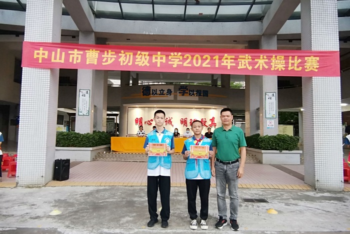 一場課間操比賽,一個以年級為單位的集體活動,給每個同學提供了展示的舞臺,同學們收獲滿滿。從開學到現在曹中一直掀起了學習武術操的熱潮,賀坤老師在每節課、每個課間操時認真教學,其他體育老師在體育課認真指導,各班主任在課余時間鞏固訓練。在大家的共同努力之下才取得現在這樣的好成績。比賽采取現場打分,最后去掉一個最高、一個最低進行排名,按最終成績進行頒獎。