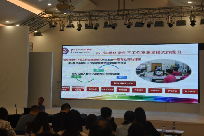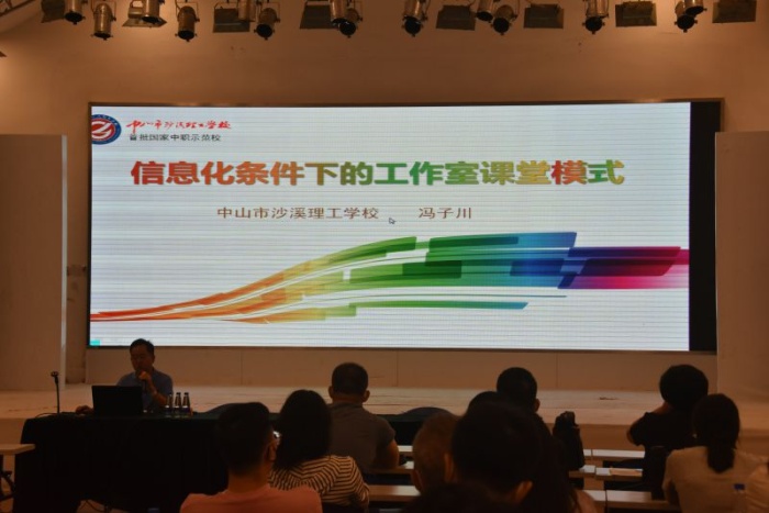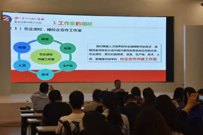 交流會上,馮子川以“中職工作室課堂模式的教學改革與實踐”“信息化條件下的工作室課堂模式”等主題作講座,重點介紹學校引企進校,建設(shè)校企合作、產(chǎn)教融合工作室,實行項目教學、生產(chǎn)性實訓、跟崗和定崗實習,讓學生在真實的企業(yè)環(huán)境里學習、實訓,使得一大批專業(yè)教師在工作室迅速成長,成為“既是學校教師,又是企業(yè)技師”的真正雙師型教師,取得了豐富的產(chǎn)學研成果。近年來,學校借助信息化手段,在課前、課中、課后等教學環(huán)節(jié)中利用數(shù)字化課程學習系統(tǒng),通過在線學習、在線交流和遠程評價等方式,幫助學生逐步達到技能形成、能力培養(yǎng)、知識創(chuàng)新的學習階段。