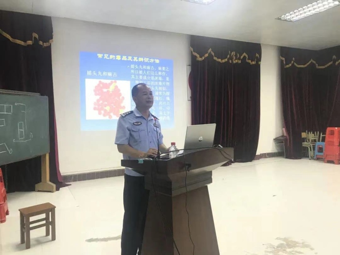 隨后,林警官通過一系列圖片,向同學們展示了常見的毒品及其辨識方法。其中,傳統毒品包括鴉片、海洛因、罌粟殼、大麻、病毒、搖頭丸和麻古、阿拉伯茶、干花和紅冰;還有一些常見的新型毒品包括奶茶、浴鹽、開心水、止咳水、跳跳糖、神仙水和郵票毒品。林警官通過對這些毒品的成分、外觀和吸食后果進行介紹,讓同學們直觀地學會辨識毒品、更深刻地認識到毒品的危害性、成癮性和非法性。