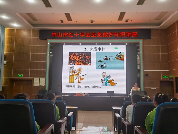 10月27日下午,香暉園小學(xué)組織三、四年級學(xué)生在報告廳開展了主題為“做學(xué)校的急救英雄”應(yīng)急救護知識講座活動,其他年級通過直播觀看了活動。講座邀請了中山市紅會衛(wèi)生救護培訓(xùn)中心高小紅老師主講。高老師根據(jù)同學(xué)的年齡特點,運用通俗易懂的語言,結(jié)合豐富的案例進行講解。同學(xué)們都全神貫注地傾聽高老師的講解,并積極參與到現(xiàn)場的情景模擬之中。
