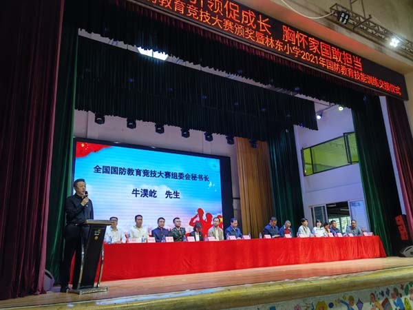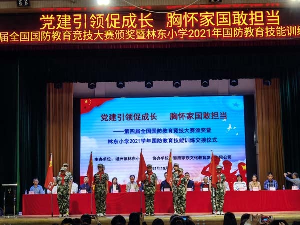 為進一步貫徹落實《中華人民共和國國防教育法》和國防特色學校相關要求,培養學生的國防意識,提高國防素質,深入推進學校國防特色建設,10月22日,坦洲鎮林東小學在體育館舉行了第四屆全國國防教育競技大賽頒獎暨林東小學2021年國防教育技能訓練交接儀式。中華網國防軍事發展中心總經理、大賽組委會秘書長牛淏屹,中山市委宣傳部宣傳教育科科長康維華,中山市教育和體局體衛藝科四級主任科員李藝,中山市中小學德育研究與指導中心副主任、石岐區教體文旅局德育專干潘志堅,坦洲鎮宣傳辦副主任、教體文旅局副局長張穎銘,坦洲鎮教體文旅局副局長楊興,鎮武裝部干事高華順,鎮團委專干黃家燕,市全民國防教育講師團成員梁華,鎮教體中心專干、兄弟學校校長以及林東小學五、六年級全體師生和各班家委會成員參加了此次活動。