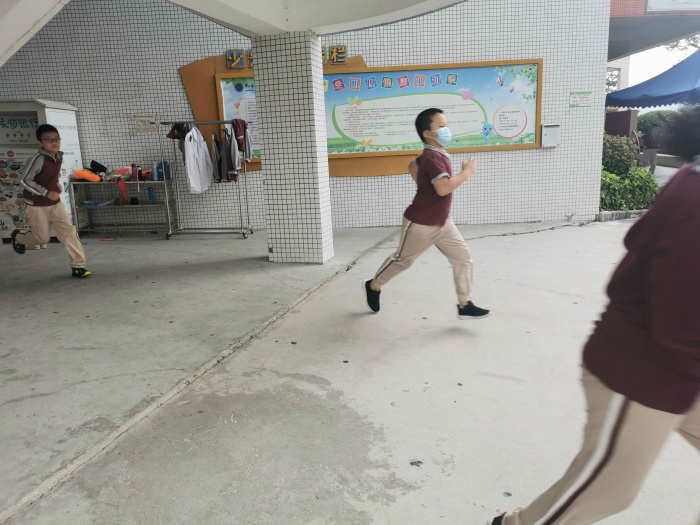 警報(bào)聲一響,模擬有易燃物著火發(fā)出濃煙,學(xué)生馬上雙手捂住口鼻,逃避開校園建筑物,在教師的引導(dǎo)下迅速按指定路線有序疏散,班主任自始至終跟隊(duì),密切關(guān)注演練現(xiàn)場(chǎng),維持活動(dòng)紀(jì)律,防止意外發(fā)生。學(xué)生疏散到指定的安全區(qū)域后,各班班長(zhǎng)迅速集合,清點(diǎn)人數(shù)并向總指揮匯報(bào)情況。雖然天公不作美,剛疏散到一半,馬上就下起了大雨,但是老師們和同學(xué)們都能沉著冷靜、互相合作,一切行動(dòng)聽從指揮,有序到達(dá)能避雨的地方排好隊(duì),不慌亂,以較快的速度,圓滿地完成了此次緊急疏散的演練任務(wù)。