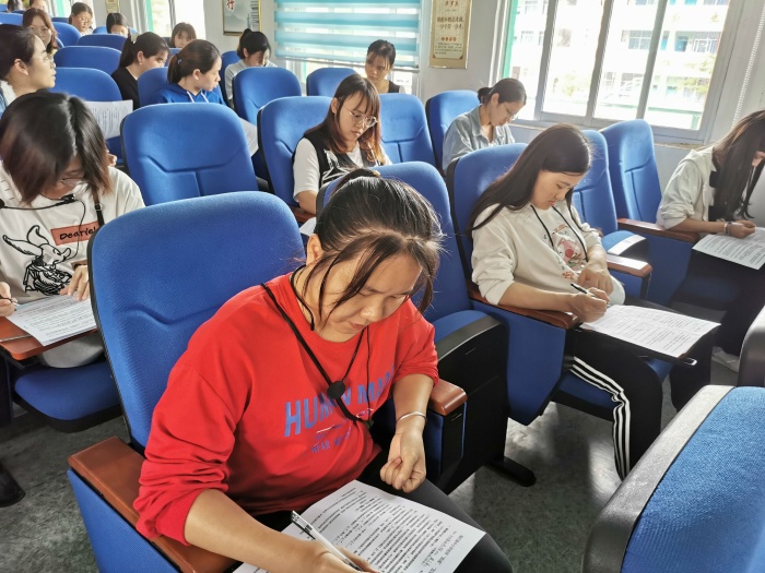 接著,汪芳組織了教師“五項管理”閉卷答題活動。老師們經(jīng)過30分鐘的答題時間,交上了滿意的答卷。