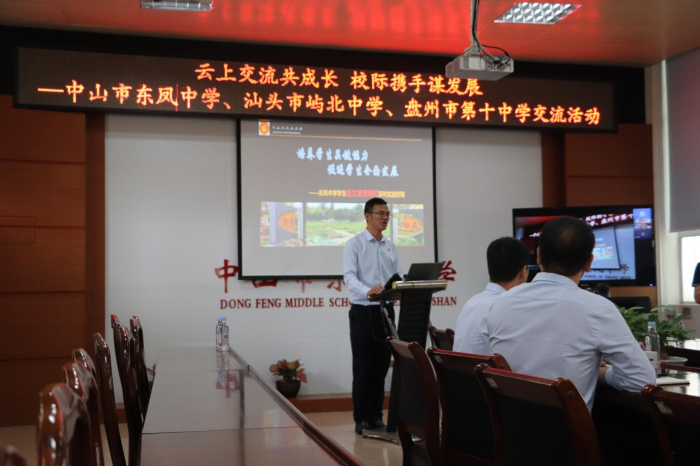 交流活動中,中山市東鳳中學(xué)劉喜全校長首先致辭。他強調(diào)了三校結(jié)對幫扶合作交流的重要意義,希望三校可以實現(xiàn)共建共享、互助成長,構(gòu)筑教育教學(xué)事業(yè)的同心圓。隨后,劉喜全校長、蔡偉洲校長、盤州市第十中學(xué)戴震副校長分別對本校的基本情況、師資生源等情況作了全面的介紹。