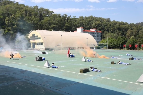 最后國防教育基地張培棟主任作了總結性發言。他指出,五天的軍訓時間,教官們的嚴格訓練和老師們的關心關愛,使得同學們的身體素質和精神面貌得到改變,軍訓匯演成果喜人。他希望同學們要發揚軍隊優良傳統,保持軍訓優良作風;嚴于律己,養成良好的習慣,遵守規章制度;增強團隊意識和集體榮譽感。