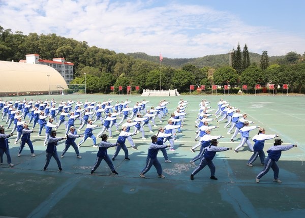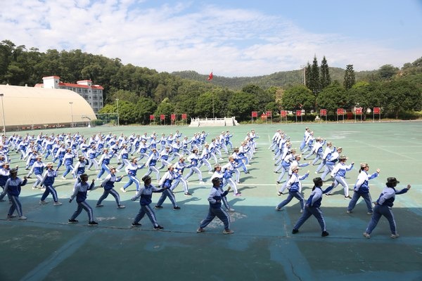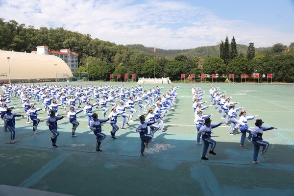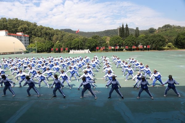 嘹亮有力的口號作驪歌,難忘的軍訓將至尾聲,藍天白云之下,在結營儀式中,經歷煥新蛻變的龍山人正展示著一份完美的軍訓答卷。只見分列式行如風,立如松,不動安如鐘;匕首操方隊英姿颯爽,氣壯山河;軍體拳方隊慷慨激昂,意氣風發;戰術方隊行云流水,整齊劃一。匯報過程連貫有序,現場氣氛莊嚴肅穆,動作鏗鏘有力,充分展示展現出了龍山學子朝氣蓬勃的精神面貌,也體現了他們熱烈昂揚的愛國情懷。