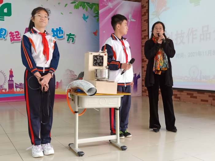 升旗儀式后,校會拉開序幕。品學兼優的“小發明家”六2班趙梓濤同學展示了他的科技創新作品,臺上的他,熟練地演示并分享了作品——“抽煙機”的工作原理。隨后,韓主任采訪了他的創新作品的創作來源以及創新之處。臺下的同學們聽得津津有味,若有所思。趙子濤同學那精益求精、鍥而不舍的探索精神在同學們的心中扎根,學校鼓勵大家學習他善于觀察生活中的各類現象,勤于思考,遇到問題努力想出各種點子去實踐、去解決的能力。