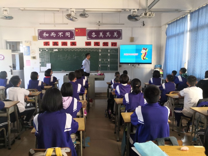 班會課上,班主任先講解了“消防安全日”來源。11月9日的月日數恰好與火警電話號碼119相同,而且這一天前后,正值風干物燥、火災多發之際,全國各地都在緊鑼密鼓地開展冬季防火工作。為增加全民的消防安全意識,使“119”更加深入人心,公安部將每年的11月9日定為全國的“消防宣傳日”。然后,從“火災的危險性、燃燒必須具備的條件、火場上如何逃生、如何報警”四個方面介紹在家里和學校如何預防火災。各班還通過播放視頻講解了在發生火災時要立即離開危險區、選擇簡便安全的通道和疏散設施、使用簡便防護器材、自制簡易救生器材、尋求暫時避難區域。