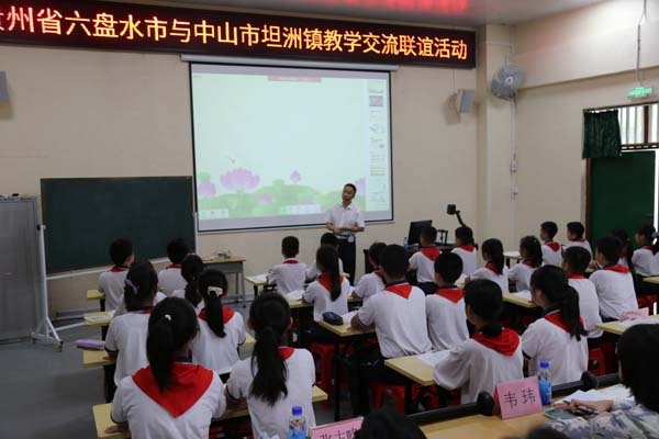 為加強貴州省六盤水市與中山市坦洲鎮的教學交流,11月5日上午,在貴州省六盤水市教育局的組織下,六盤水市各區小學的正副校長一行12人來到中山市坦洲鎮。中山市坦洲鎮教體文旅局副局長韋瑋、楊興,教育和體育事務指導中心主任張志略、教研專干梁北橋,林東小學校長吳維雄等領導熱情接待了遠道而來的同行們,并在林東小學階梯室舉行了教學交流聯誼活動。來自坦洲鎮各小學的語文骨干教師七十余人,也參加了本次活動。