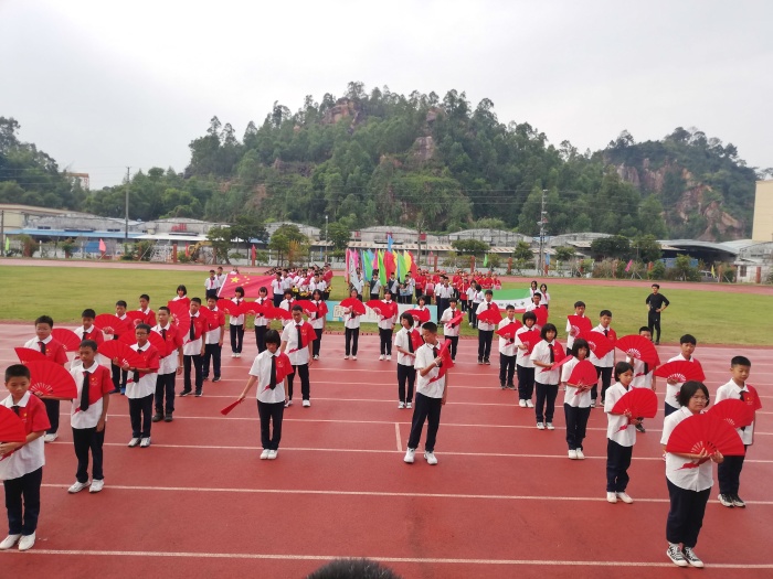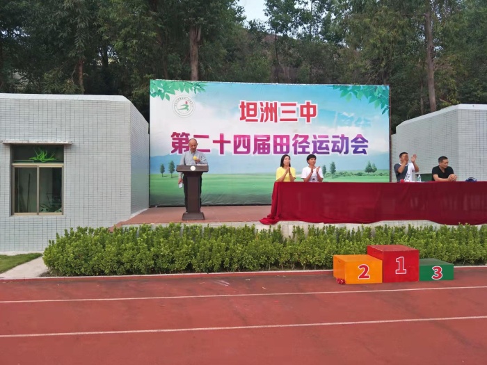 隨后,朱漢業校長上臺致辭,肯定了坦洲鎮第三初級中學田徑運動會開辦以來取得的成績,并對本屆運動會提出希望與要求,一聲堅定而有力的 “坦洲鎮第三初級中學第24屆田徑運動會開幕”,預示著運動會正式開始。此時,國歌奏響,禮炮高鳴,全校師生歡呼雀躍。接著,德育處艾金全主任代表學校作了發言,他希望全體同學們能以本屆運動會為契機,增強體魄、凝聚人心,并預祝本屆田徑運動會圓滿成功。