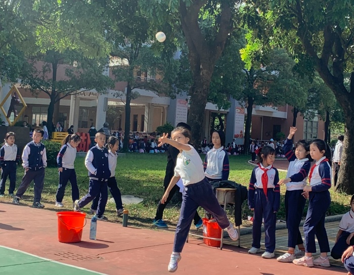 為增添運動會趣味,拉近師生間的距離,學生運動會結束后,在體育科組的組織下,同茂小學全體教師參加了微型趣味運動會。在比賽中,老師們認真對待,為學生們樹立榜樣。