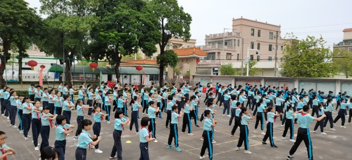 周五下午,隨著出操音樂響起,全體學生精神抖擻地走向操場。這次廣播操比賽以年級為小組進行比賽。伴隨著歡快活潑的音樂,學生們舒展腰身,做起早操。各班學生聽著指揮,標準地做著各種動作,整齊劃一,退操整齊有序。評委根據各班做操動作,隊列協調度進行評分,獎勵前三名班級。這次廣播操比賽,對日后學生上課的精神面貌以及學生上課的自控能力的培養都有一定的促進作用。