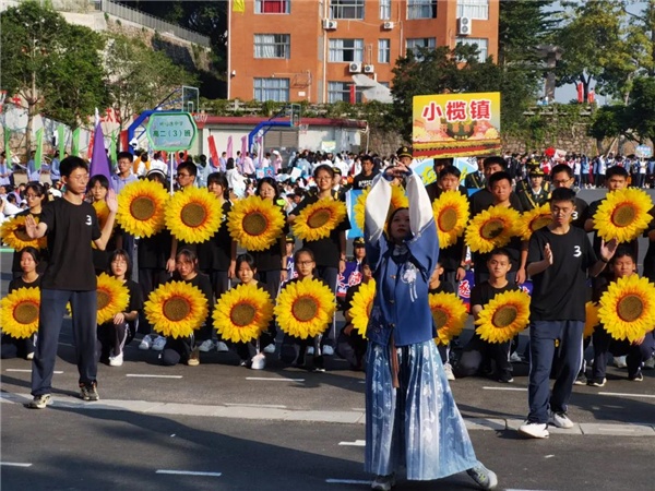 緊隨入場的是各班級方隊,他們身著班服,面帶陽光笑容,朝氣蓬勃,活力四射。每個班的入場式具有明顯風格特色,主題鮮明而靈活多變,令人耳目一新。尤其是部分班級同學們的手工制作道具,讓人“驚喜不斷”。高一年級以“擁抱大灣區”為主題,每個班級對應一個大灣區城市,演繹人文風情,展示城市風采,彰顯城市魅力。高二年級以“起航新中山”為主題,每個班級對應中山一個鎮區,“一鎮一特色”、“一鎮一品牌”,以新視角呈現發展新格局。高三年級以“奮進西林山”為主題,每個班級展現一個學習生活場景,高雅藝術與流行藝術的融合、傳統文化與時尚潮流的碰撞,自信有禮與陽光奮進的輝映,綻放別樣青春風采。