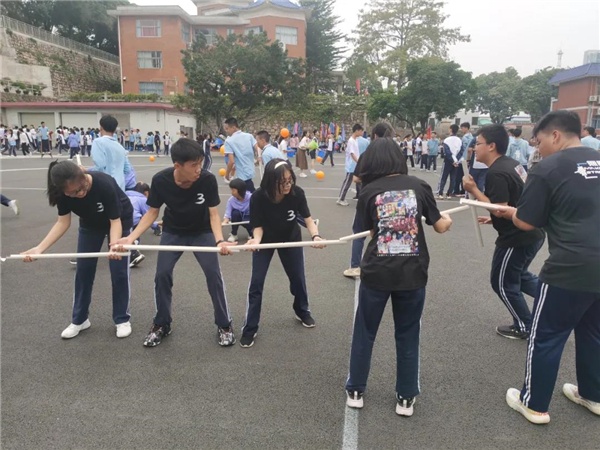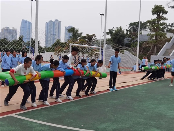 旗搖搖,鼓聲聲,擋不住的是青春活力;槍聲響起,“預備起跑”,擋不住的是健兒們如火般的氣勢。本次運動會除50米、100米、立定跳遠等競技比賽外,還設置了眾多趣味運動項目,如大拖鞋接力、踩高蹺、氣墊船競速、巧接飛彈、蒙眼敲鑼、引球過橋等,這些富有創意和趣味、需要凝心聚力、團隊合作的比賽,讓同學們放松心情、收獲幸福快樂,實現“腦力體力皆鍛煉,友誼競技雙豐收”。