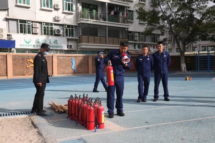 為了讓教職人員進一步掌握消防知識和正確使用滅火器,演練結束后,學校請特勤站人員再次進行消防知識培訓和現場滅火教學,部分教師、保安、后勤人員參加了培訓,并在培訓結束后,手持滅火筒對準火源進行滅火操作,通過親身實踐,熟練掌握滅火器的正確使用方法。