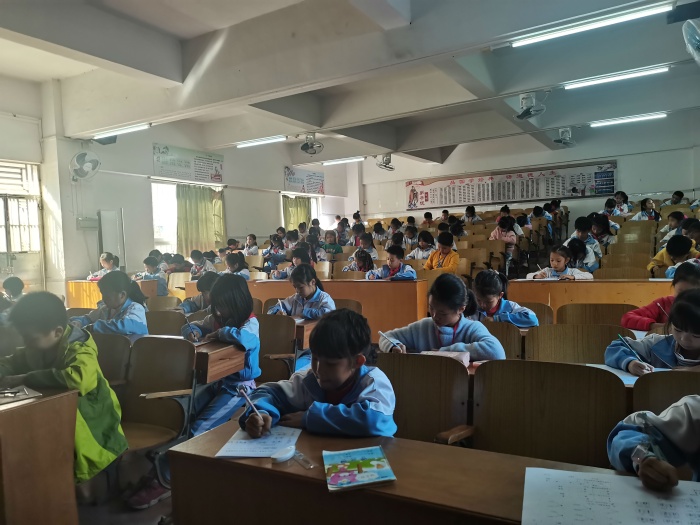 瞧,孩子們認真答卷的樣子,多專心啊!仿佛在說:我們可是卯足了勁要拿第一呢!老師說過,細心才是最好的朋友,一定要睜大眼睛仔細看,做到“眼到,心到,手到”。“我要抓緊時間,我要把字寫得端端正正,我要認真思考,只有這樣才能百戰百勝,取得好成績!”這樣的畫面構成了賽場上一道靚麗的風景線。