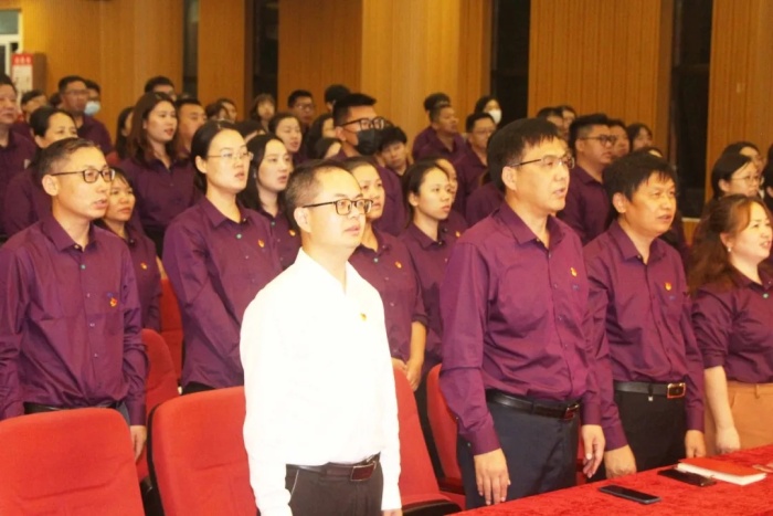 2021年11月17日18時30分,中共中山市紀中三鑫雙語學校委員會在報告廳組織召開全體黨員大會,主題為:傳達、學習中國共產黨第十九屆六中全會精神。