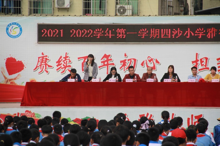 為更好總結雅行教育取得的成效,進一步落實“雙減”政策,強化學生文雅習慣教育,不斷提升教育教學質量,推動學校高質量發展,2021年11月15日上午,四沙小學組織全體師生在田徑場上舉行了雅行教育期中總結會。四沙小學校長歐慧芳、德育處、教務處和總務處代表分別進行了總結發言。
