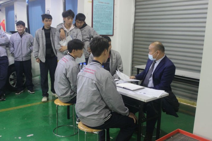 本次供需見面會共有中山市金寧汽車集團、中山市中裕雷克薩斯4S店、中山三聯豐田4S店、中山市惠通之星奔馳4S店等4家中山汽車服務行業的龍頭企業參加,提供機修、汽車銷售、鈑噴、服務接待和配件等多個崗位。19IMI班的同學們認真聽取企業介紹和崗位介紹,結合自身的需求踴躍投出簡歷,與企業現場招聘工作人員進行真誠交流,他們的優秀表現讓企業十分滿意。其中中裕雷克薩斯的李建軍經理對本班的6名云南學生和有強烈做噴圖意向的李克凡同學情有獨鐘,這7名學生現場被企業聘用并承諾實習工資約每月2500元。另外,惠通之星和三聯豐田兩家4S店的人事經理對學校推薦的實習生直接錄用,金寧集團高端的新能源汽車崗位對學生更具吸引力。