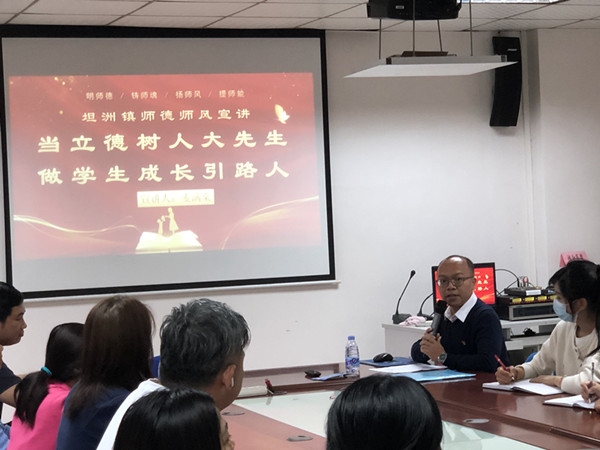 12月15日下午,我校有幸邀請(qǐng)到坦洲鎮(zhèn)宣講團(tuán)成員、十四村小學(xué)麥滿(mǎn)棠主任為我校教師作主題為“當(dāng)立德樹(shù)人大先生 做學(xué)生成長(zhǎng)引路人”的專(zhuān)題講座。本次講座由王峰主任主持,全體教師聆聽(tīng)學(xué)習(xí)。