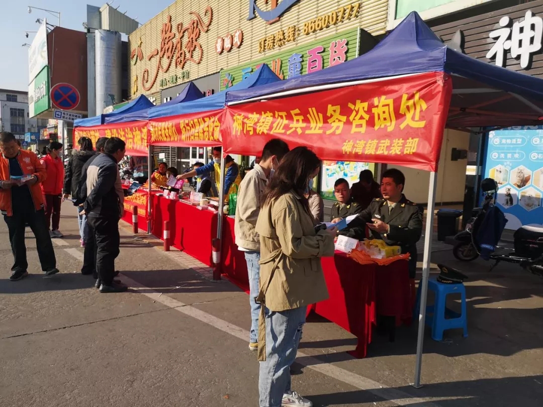 自2022年上半年征兵的號角吹響后,神灣鎮陸續開展常態化征兵工作,鎮征兵辦加強組織部署,于2021年11月下旬和12月下旬就分別召開了2022年征兵工作形勢分析會和2022年征兵工作動員大會,并利用“神灣發布”微信號、懸掛橫幅、各商圈大型屏幕、鎮政府各辦公區以及各村(社區)電子熒屏等多種渠道進行征兵宣傳,營造濃厚氛圍。