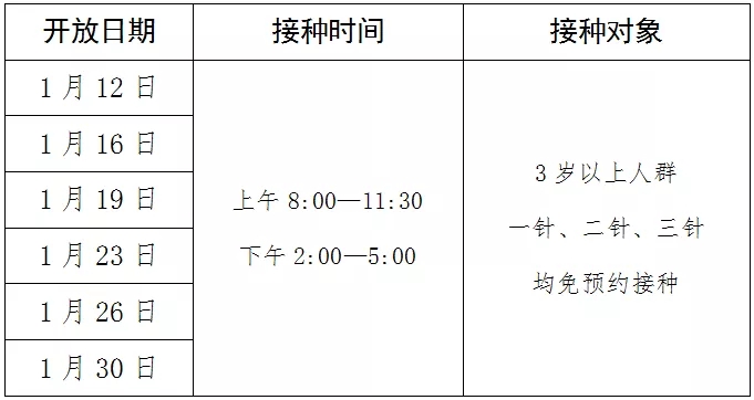 1月10日起至1月30日板芙鎮新冠疫苗臨時接種點開放時間調整為:逢星期三、星期日開放,其余時間暫停接種,春節期間的接種安排另行通知。請廣大群眾留意并相互轉告,避免跑空。