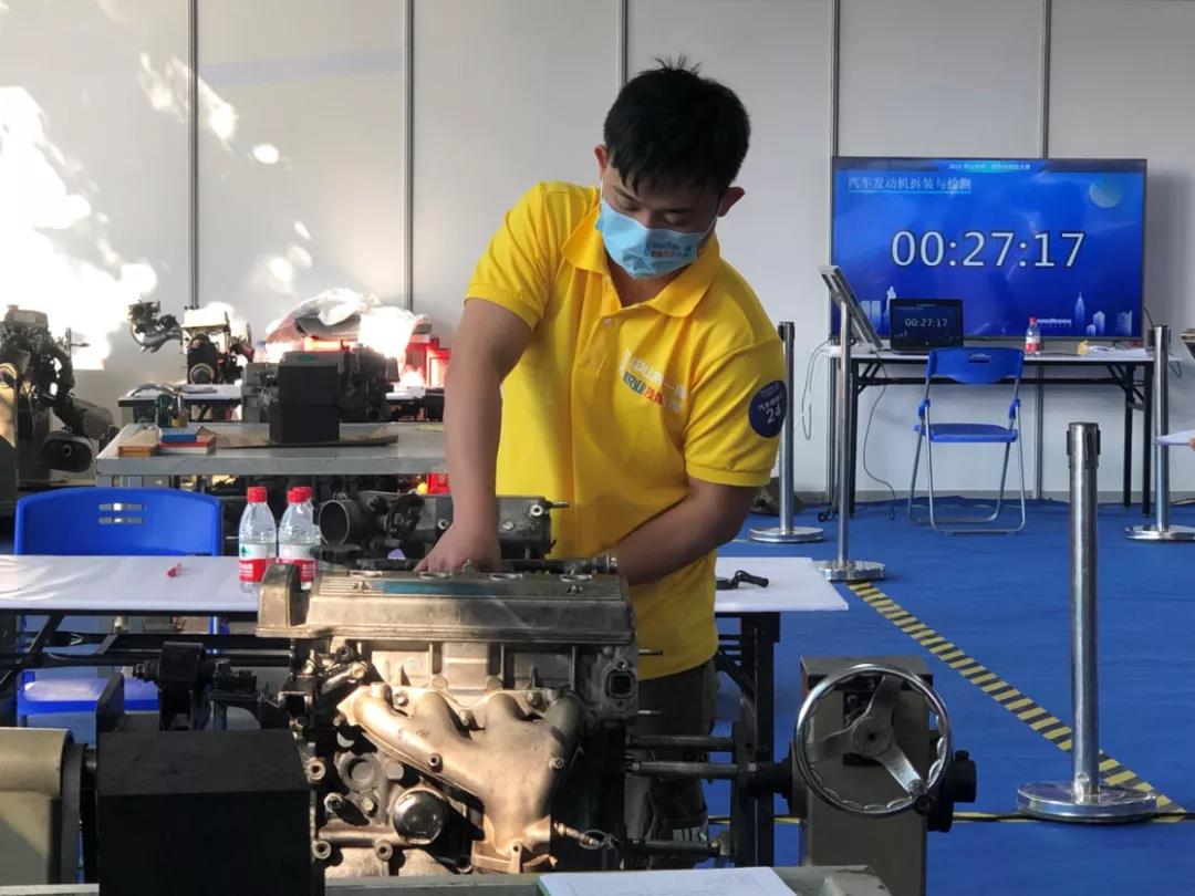 汽車維修比賽項目中,選手與時間賽跑,全神貫注投入比賽。