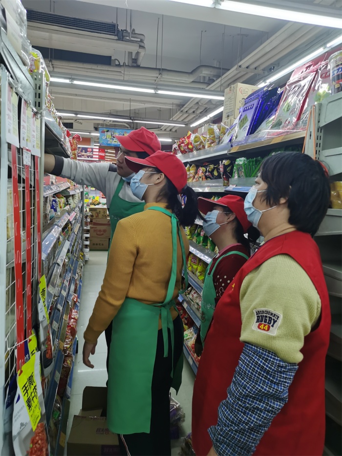 開(kāi)始實(shí)習(xí)前,店長(zhǎng)向師生們簡(jiǎn)要介紹了超市情況。老師根據(jù)學(xué)生的特點(diǎn)將學(xué)生分到收銀組、清潔組和理貨組。為了讓所有學(xué)生體驗(yàn)到每個(gè)小組的工作,老師安排小組成員按時(shí)進(jìn)行輪換。收銀實(shí)習(xí)時(shí),同學(xué)微笑著向顧客問(wèn)好,同時(shí)熟練地操作收銀系統(tǒng),置禾超市收銀員夸贊同學(xué)們“操作準(zhǔn)確,學(xué)習(xí)能力強(qiáng)!”清潔實(shí)習(xí)時(shí),同學(xué)們認(rèn)真、細(xì)致地進(jìn)行清掃,將貨架底部也清潔干凈。理貨實(shí)習(xí)時(shí),同學(xué)們認(rèn)真聽(tīng)工作人員講解擺貨要求,并有條不紊地進(jìn)行實(shí)操,令超市工作人員頻頻豎起大拇指。