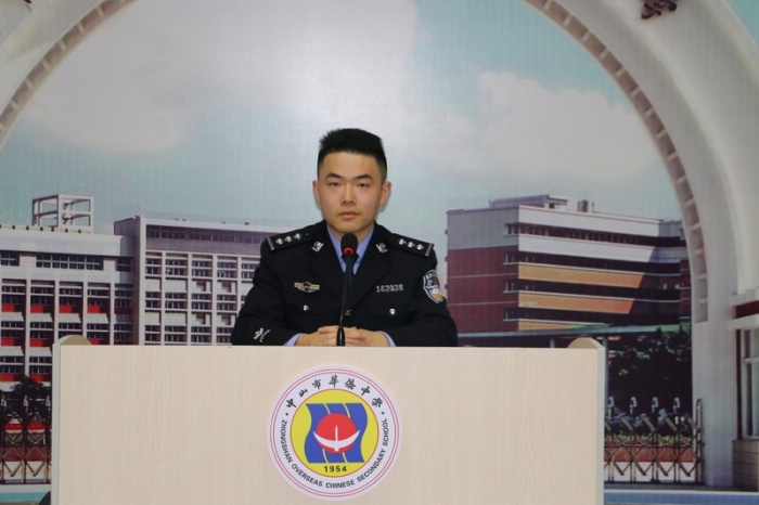 為廣泛深入開展法制教育和安全教育,提高學生的法律意識和安全意識,預防校園暴力,推進依法治校,創建平安和諧校園,12月27日,市僑中法制副校長、中山市石岐區公安局法制室李軍智警官、中山市公安局法制監管支隊崔天亮警官蒞臨市僑中高中部,指導市僑中法制教育工作,為全體學生做法制安全講座。市僑中德育處副主任景千瑞主持活動。