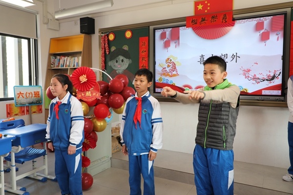 一年級“展我風采,喜迎新春”班級聯歡活動在各班班主任的組織下如火如荼地開展,孩子們更是拿出各自絕活歡度節日,瞧!多豐富的表演啊:集體歌舞、朗誦、魔術街舞、電子琴、講故事、造型表演、互贈賀卡、交換禮物送祝福、好玩的游戲及激動的抽獎。每一個教室,都成了歡樂的海洋!