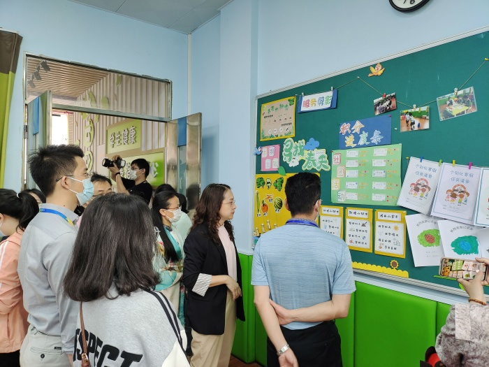 為了解學(xué)校融合教育的整體概況,以及資源教室的具體運作,交流團教師一行在林小舟校長和德育處行政陪同帶領(lǐng)下集體參觀校園,感受軒小潤物無聲,浸潤心田的水云文化。走訪心育陣地了解學(xué)校融合工作從點到面的全面鋪展。隨后,交流團教師們一行在新多媒體室,查看軒小發(fā)展融合教育多年來不斷探索的資料,聽取學(xué)校融合教育的工作匯報。