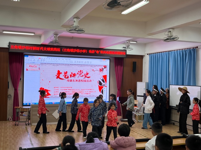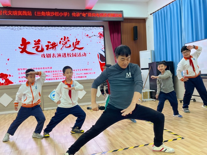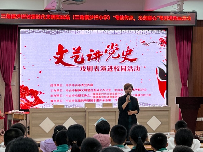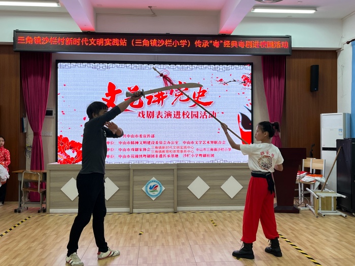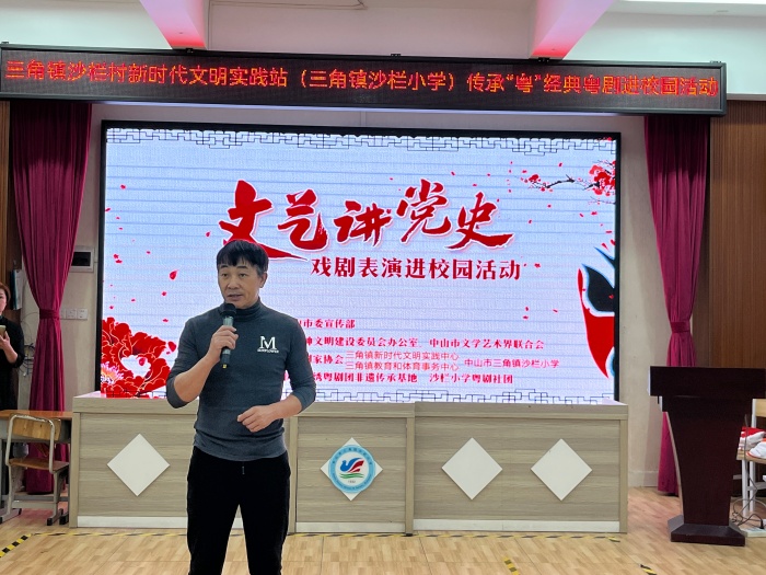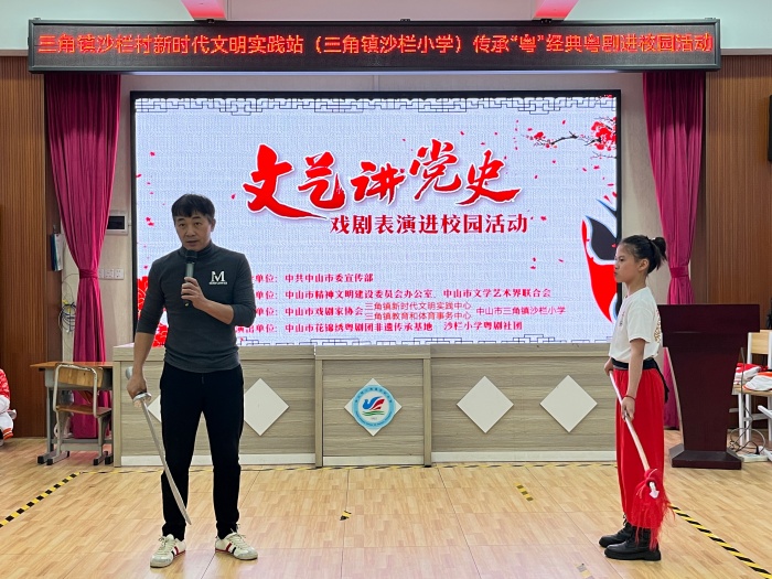 為了進一步展現中華優秀傳統文化,豐富校園生活,培養孩子們的戲曲素養,提高學校師生對粵劇文化的了解,3月28日下午,中山市花錦繡粵劇團非遺傳承基地的老師們,為三角鎮沙欄小學師生們帶來了一場精彩紛呈的視聽盛宴!讓學生看粵劇、聽粵劇、學粵劇、親身體驗粵劇。