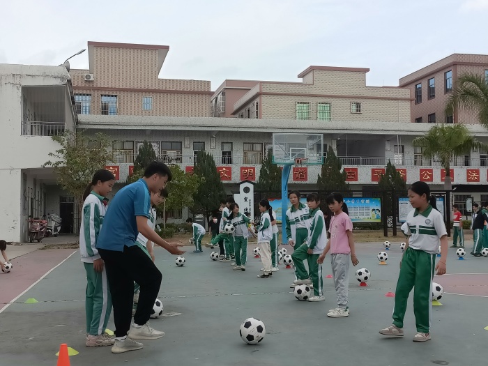 最后是吳康明老師執教的特色體育課《足球-腳內側踢地滾球》。吳老師提前布置了上課場地,上課時將學生分好組,講明體育課要求后,以“桃花朵朵開”游戲方式熱身,通過示范引導學生雙腳交替踩踏球、腳內側敲球、腳底踩拉球等球性練習,通過學習,學生基本掌握了腳內側踢地滾球技術,最后在“趕豬跑”的歡樂游戲中結束了本節課。本節課學生在輕松而快樂的氛圍下練習腳內側踢地滾球,既鍛煉了學生的身體,又培養學生對足球的濃厚興趣。