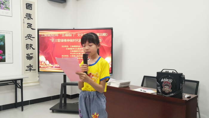 為進一步加深社員們對雷鋒精神的理解,激勵社員們積極弘揚踐行雷鋒精神并在新時代下賦予雷鋒精神更加豐富而深刻的內涵,助力社員們在雷鋒精神的滋養陪伴下更加健康茁壯地成長,3月18日上午,三角鎮三角小學海鷗文學社的部分社員在中山市文化館三角鎮分館參加了由三角鎮宣傳辦、三角鎮宣傳文化中心(圖書館)等單位聯合主辦的三角鎮2023年“五福臨門”文化周活動(第20期)“學習雷鋒精神做時代新人”共讀活動。