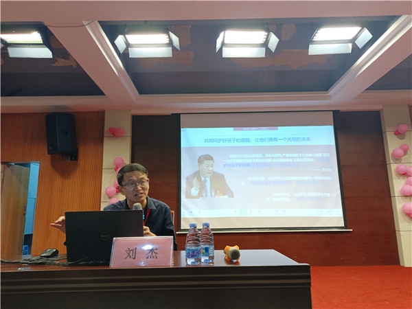 在我國的第6個“近視防控宣傳教育月”里,為共同呵護好孩子的眼睛,讓其擁有一個光明的未來。3月23日,責任督學、中山市學校健康教育百師宣講團副團長劉杰校長專程到三鄉鎮白石環小學作了《千方百計抓好學生近視防控工作》的專題講座。全校教職工參加了培訓。