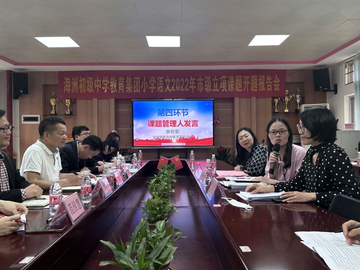 本次開題報告會誠邀小欖績東二小副校長何小玲、市學科帶頭人于柳以及古鎮鎮教體中心廖秋菊老師等領導專家為課題組成員論證指導。此外,參加本次會議的還有海洲初級中學教育集團的語文教師和課題組成員。