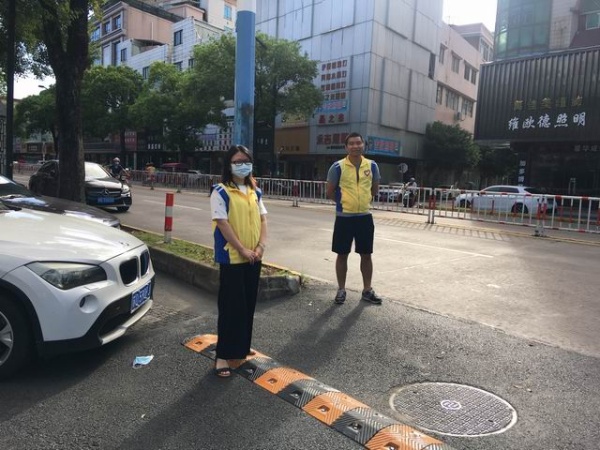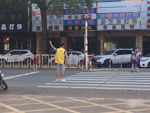 家長志愿者服務隊站立在學校各個出入口執勤,“同學下車請家長駕車離開,” “小同學不要跑小心慢走,”“家長們請往后站站”“請同學們走路注意腳下,不要擠”……志愿者服務隊一邊耐心地向家長進行善意的提醒、勸導,一邊和老師照看放學的孩子。