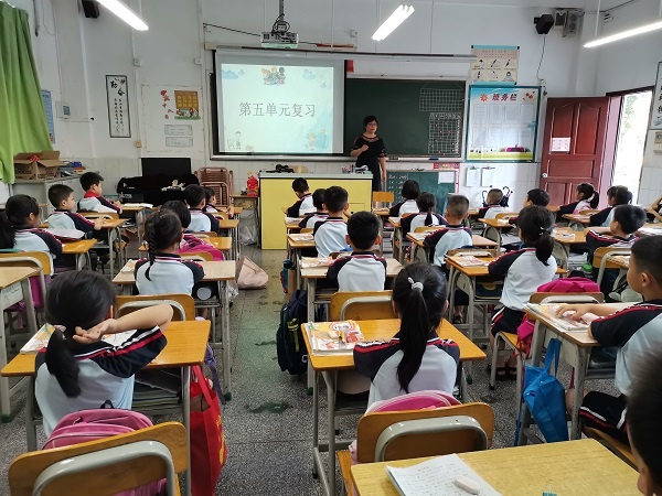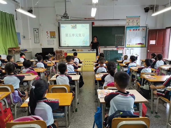 莊老師執教的這節課的教學重點聚焦在一年級下冊第五單元的復習。上課伊始,莊老師帶著同學們縱覽第五單元的所有課文,再分門別類從第五單元的一類字、二類字、重點詞語、重點句子、多音字、同音字、形近字、日積月累中的歇后語帶著同學們一起復習鞏固,最后通過10分鐘的當堂小測驗,趁熱打鐵,及時鞏固學生的第五單元復習成果。