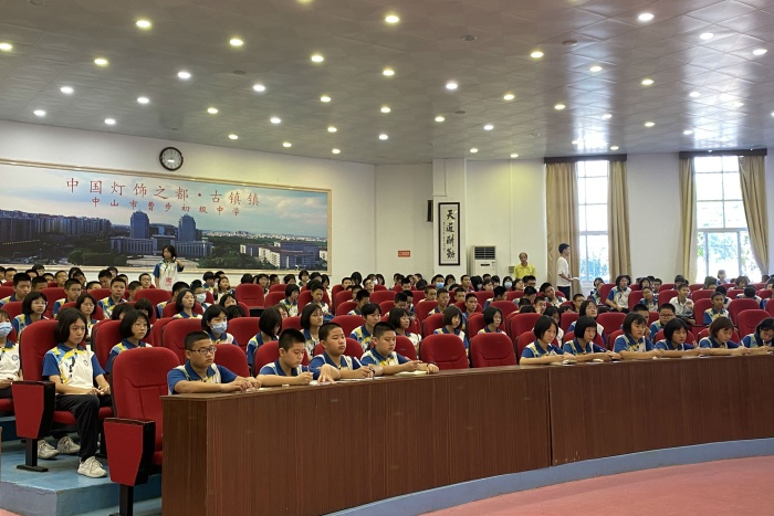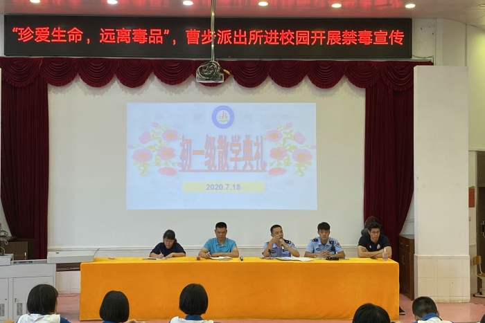 情溢校園,歡遍滿園。忙碌而充實的一個學期結束了,2020年7月18日上午8:30,中山市曹步初級中學2019-2020學年(下)散學典禮暨法制安全教育在學校報告廳隆重舉行,參加會議的有吳文杰副校長、學校法制副校長朱揚、初一級長馬麗老師、初一級各班班主任及全體初一級同學們。