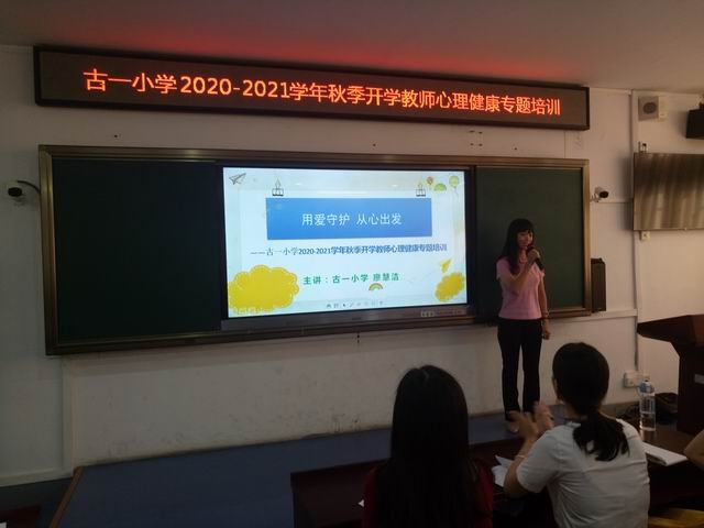 學(xué)期伊始,在繼續(xù)加強(qiáng)新冠肺炎疫情防控工作的同時,為提升教師心理素質(zhì),加強(qiáng)教師的自我認(rèn)知能力,促進(jìn)教師彼此間的交流互動,增強(qiáng)職業(yè)幸福感。8月29日上午,古一小學(xué)開展教師心理健康培訓(xùn)及開學(xué)防控新冠肺炎疫情教師專題培訓(xùn)。會議由元澤勇主任主持,全體教師積極參lk 。