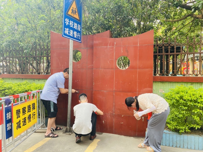 炎炎夏日,在姚成輯副校長的帶領下,老師們不懼高溫,拿起掃把、抹布、鏟子等清潔工具,頂著烈日,將校園周圍的垃圾、枯枝落葉等掃干凈,把校門口地面鉆出的雜草連拔帶鏟弄干凈,為了將校園外墻頑固的“牛皮癬”清理干凈,老師們慢工出細活,仔仔細細地將墻面的印子也一點點地用小鏟子鏟干凈……當然,衛生死角也不放過。盡管天氣炎熱,汗水浸濕了衣服,但是大家互相配合、分工合作,將校園周邊的每一寸地方都仔細地清掃干凈,校園環境在老師們的共同努力下變得煥然一新,為營造文明健康生活貢獻自己的一份力量。