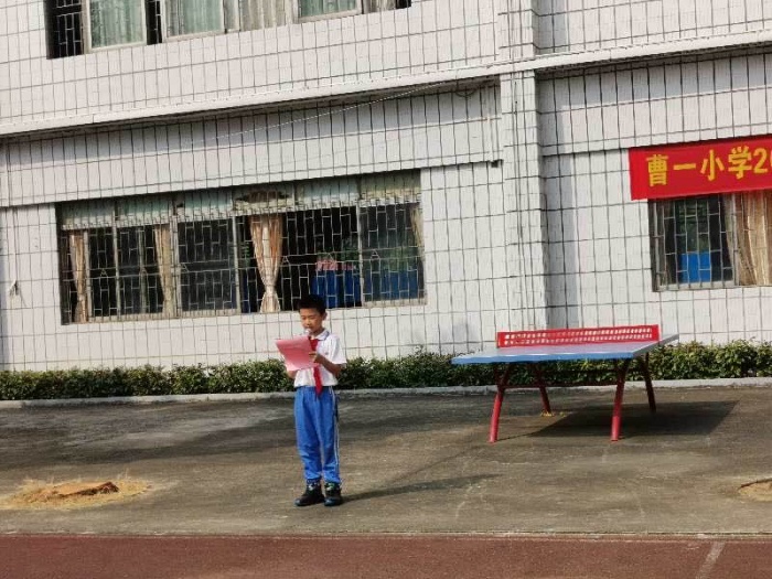 在開學典禮上,學校肖壽光校長發表了新學期致辭。在致辭中,他面向全體師生介紹了新的行政班子和新教師。同時,肖校長代表全體師生對新加入曹一大家庭的新行政、新教師、一年級新生表達了熱烈的歡迎。新學期,校長面向全體師生發出“光盤行動”倡議,倡導節約良好生活新風尚,鼓勵全體師生以全新的面貌迎接新的開始,共同努力再創曹一新輝煌。