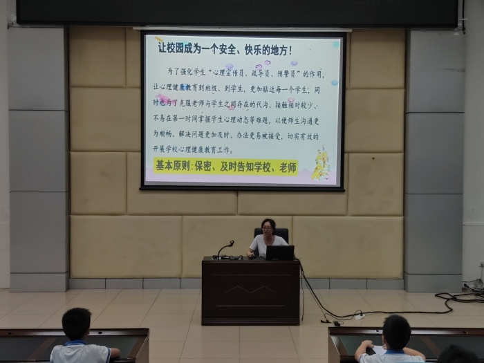 鎮南小學新學期心理委員會議于9月10日下午在學校報告廳召開,本次會議由心理教師陳綺琪老師主持,四到六年級各班心理委員參加了本次會議。本次會議以加強心理工作的部署為主題,旨在使各班心理委員明確自己的工作任務和工作目標,更好地為班級同學服務。