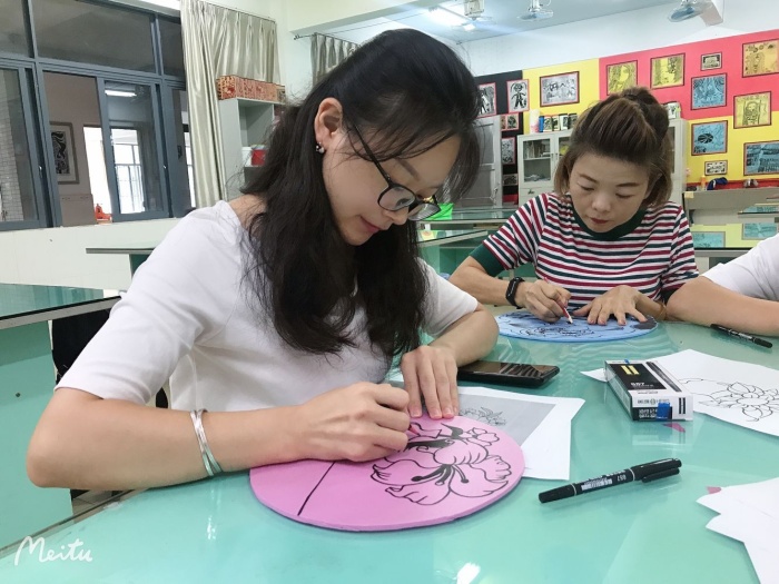 首先梁老師為云南的六位跟崗的教師上了一節(jié)專題的版畫教學課,根據(jù)跟崗的教師的專業(yè)差異性和接收能力,梁老師設計了一節(jié)材料比較容易操作的吹塑板單色的版畫教學內容,她從版畫的種類、制作版畫的工具、及版畫制作步驟、產(chǎn)生凹凸的技巧進行詳細講解,親自進行分步驟演示,并且詳細示范了吹塑版畫的制作過程。這節(jié)課不僅給了老師們視覺上的盛宴,更重要的是讓老師們感受到了版畫的多種表現(xiàn)形式,體會到了版畫藝術的魅力。最后,六位云南跟崗的老師在美術科組其它老師的指導和幫助下,順利完成了自己的第一件版畫作品。看到自己的成品,跟崗教師都非常開心,學習收獲滿滿。