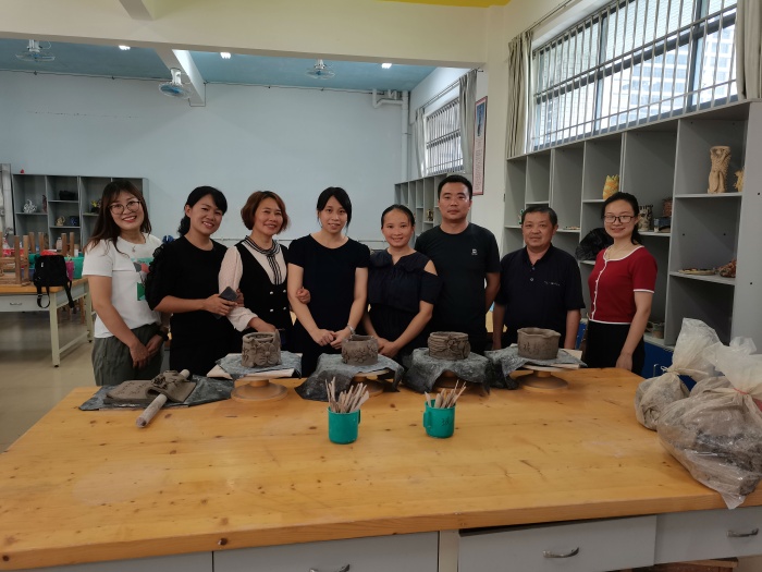 為了促進跟崗教師與鎮南美術教師的學習交流,使他們得到更好、更快的成長與發展,鎮南小學為跟崗教師制定了有層次、有梯度、有實效的學習計劃和任務。9月7日,鎮南小學陶藝教師為跟崗教師開展了制陶學習活動。