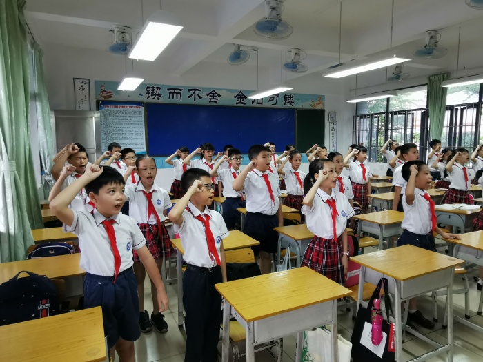 最后,小主持帶領全體同學呼號,同學們語言鏗鏘有力,擲地有聲,相信鎮南小學的同學會珍惜和平的學習環境,好好學習,為富強中國做出自己的貢獻。