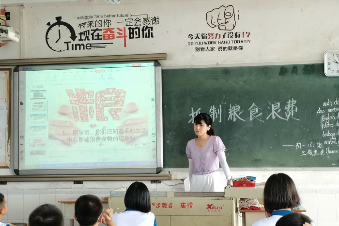 2020年9月16日星期三,曹步初級中學初一(6)班在第二節課召開了“節約糧食”主題班會。