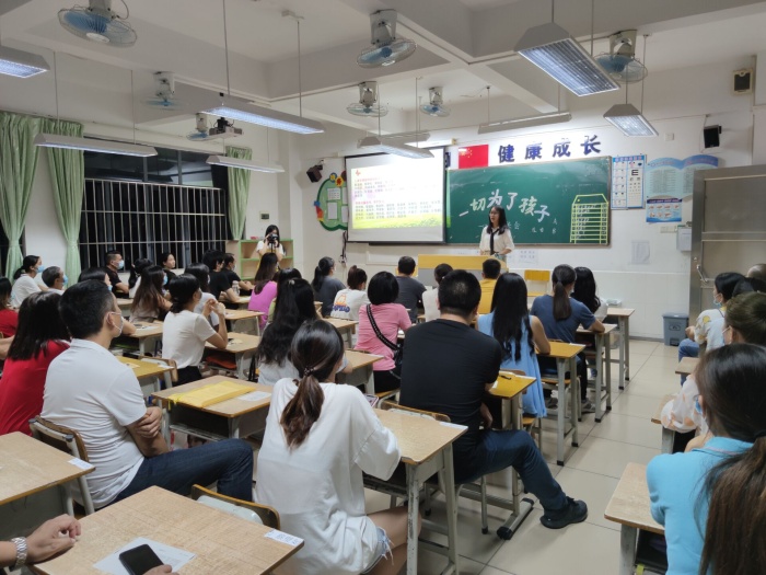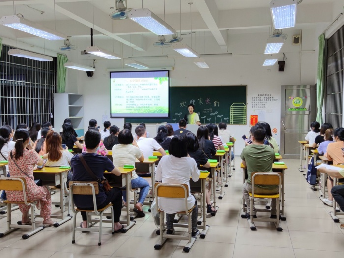 主會場的會議內容結束后,由各班級的班主任帶回到自己的班級,班主任和科任老師對班級的常規以及學科的教學特點、學習方法等進行講解。家長們深受啟發,紛紛做好記錄和拍照。(插入圖片7~14)
