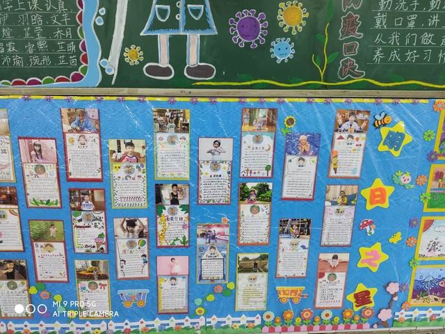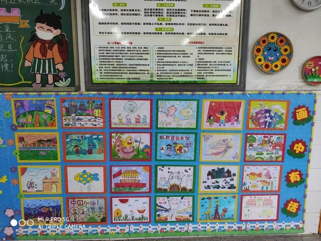 金秋十月,古一小學一(2)班也換上了光彩奪目的新裝。進入一(2)班的正門,一個好看的班徽已經看出了一(2)班是一個很友愛的班級。班主任郭根香老師通過查找資料,設計樣式,描繪出一幅幅精美的圖畫。教室的門前都設有別具一格的班牌,內容包括班徽、每月評選的文明班級獎牌、班主任寄語,這些讓全班師生時刻不忘自己是集體中的一員,同時也顯示著一(2)班堅不可摧的凝聚力。課室前面都設有班務管理欄,班務欄中,展示了本班的班級公約、學生值日表、班干職責、課程表等班級制度文化。課室兩邊的墻壁上都標有具有金話筒特色的班級標語及班歌,黑板報以“疫情防疫”為主題,內容充實、設計美觀、結構合理。板報內容根據一(2)班建設主題進行選材,并采用不同藝術形式進行表現。特色展欄里記錄著特色文化建設的點點滴滴;評比欄看到了班級成員力爭上游的不懈勁頭;畫中有話讀懂孩子們的童貞純情;明日之星里體現著同學們的互相學習、天天向上的精神風貌;學習榜樣更寄喻著孩子們的茁壯成長……